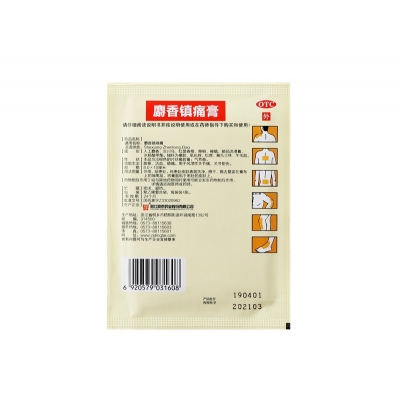 Artificial musk, raw cypress, red fennel root, pepper, camphor, belladonna extract, methyl salicylate. The auxiliary materials are rubber, zinc oxide, rosin, yellow petrolatum, and lanolin.